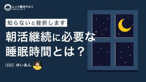 関連記事「朝活に必要な睡眠時間とは?知らないと挫折する」では、朝活を実施する上で挫折しにように必要な睡眠時間がどのくらいなのかを解説しています。参考にしてください。